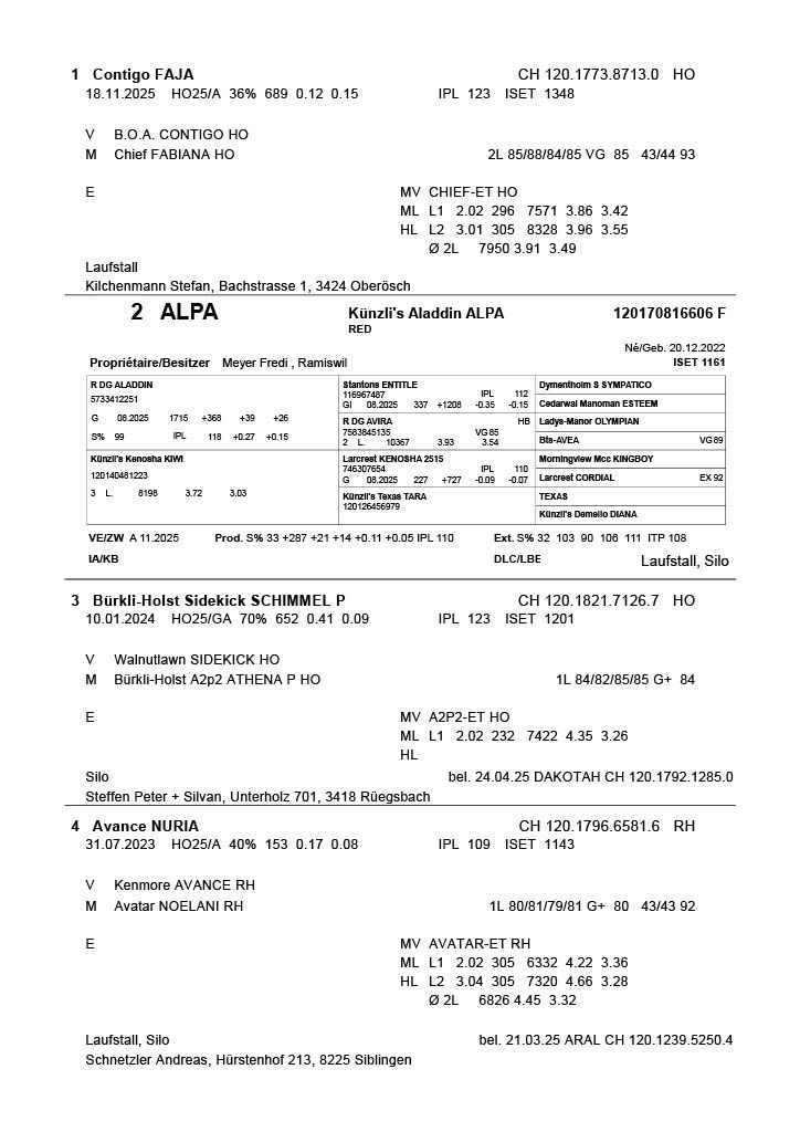 - Zahlungsbedingungen: Die Tiere werden gegen Barzahlung oder mit Einzahlungsschein (zahlbar innert 10 Tagen) verkauft.