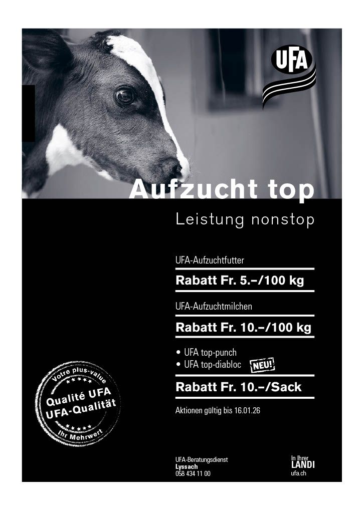 - Die Angebote müssen bei Kälbern mindestens CHF 20.–, bei Kühen CHF 50.– betragen.